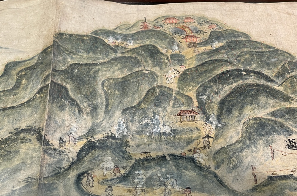 竹林寺所蔵の竹林寺縁起絵巻にも、三重塔が描かれており、古くから三重塔がこの地に建っていたことがわかる。
