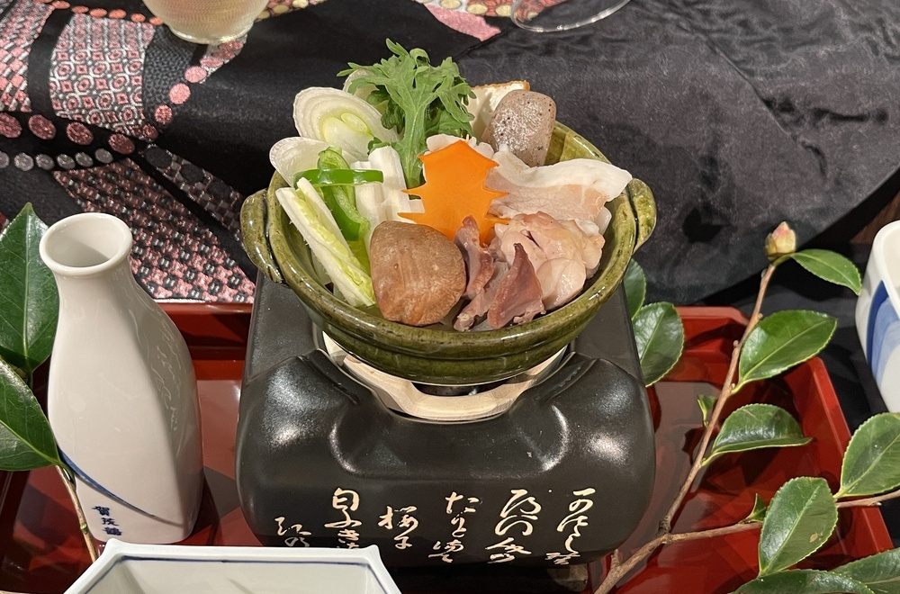 日本料理「みゆき」では、三重塔の故郷・東広島の賀茂鶴酒造の日本酒を使用した「美酒鍋」を堪能できます。これは、塩、胡椒、そして日本酒だけで水を一切使わずに調理される鍋料理で、もともとは酒造りの間の“まかない料理”として生まれたものだそうです。