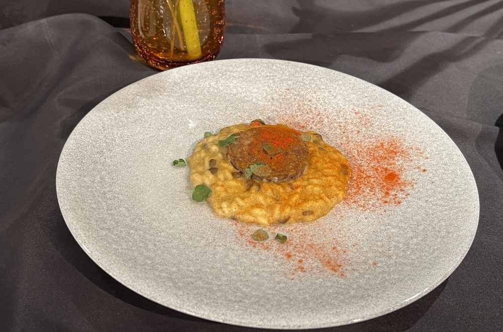 イタリア料理「イル・テアトロ」のリゾットには賀茂鶴酒造の酒粕を使用 。