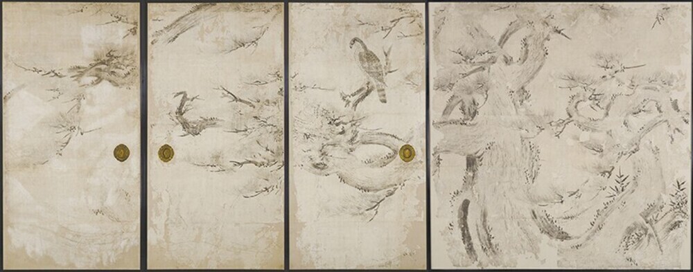 重要文化財 松鷹図(部分) 狩野山楽筆 安土桃山~江戸時代・16~17世紀 京都・大覚寺蔵/前期展示 第4章展示。