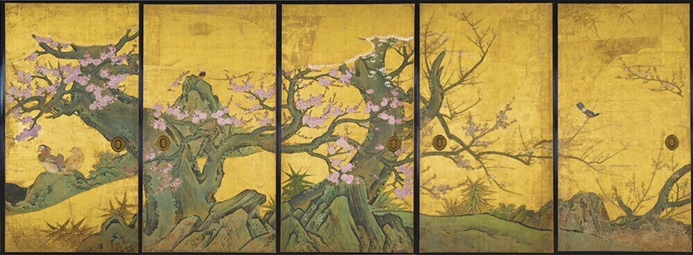 重要文化財 紅白梅図(部分) 狩野山楽筆 江戸時代・17世紀 京都・大覚寺蔵/通期展示 第4章展示。