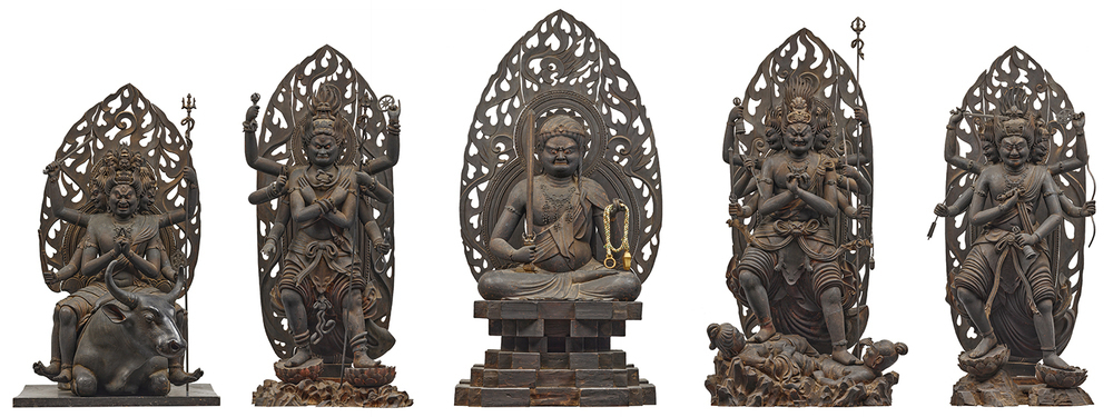 重要文化財 五大明王像 明円作 平安時代・安元3年(1177) 京都・大覚寺蔵/通期展示 第1章展示。 平安時代後期の仏像の最高傑作の一つ。不動明王を中心に五体の明王から成る。