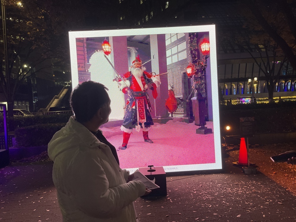 カメラの前に立つと色々なサンタに変身する「Transformirrorr(TOKYO NIGHTTIME PROJECT ver.)」。