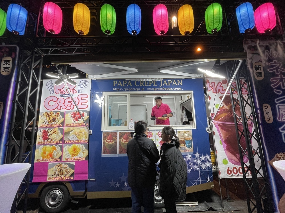 Zone-C(新宿三井ビルディング前)には、週末を中心に「Neoネオン屋台」が登場します。米、海苔にこだわった本格手巻き寿司や京都おでんが味わえる「神巻寿司」、クレープやりんご飴などスイーツが楽しめる「パパクレープ」、牛タン焼きそばやターキーレッグが人気の「スパイス」などが出店。おいしいフードやドリンクが、寒さで冷えた体を温めてくれます。出店日時については、公式サイトでチェックを。