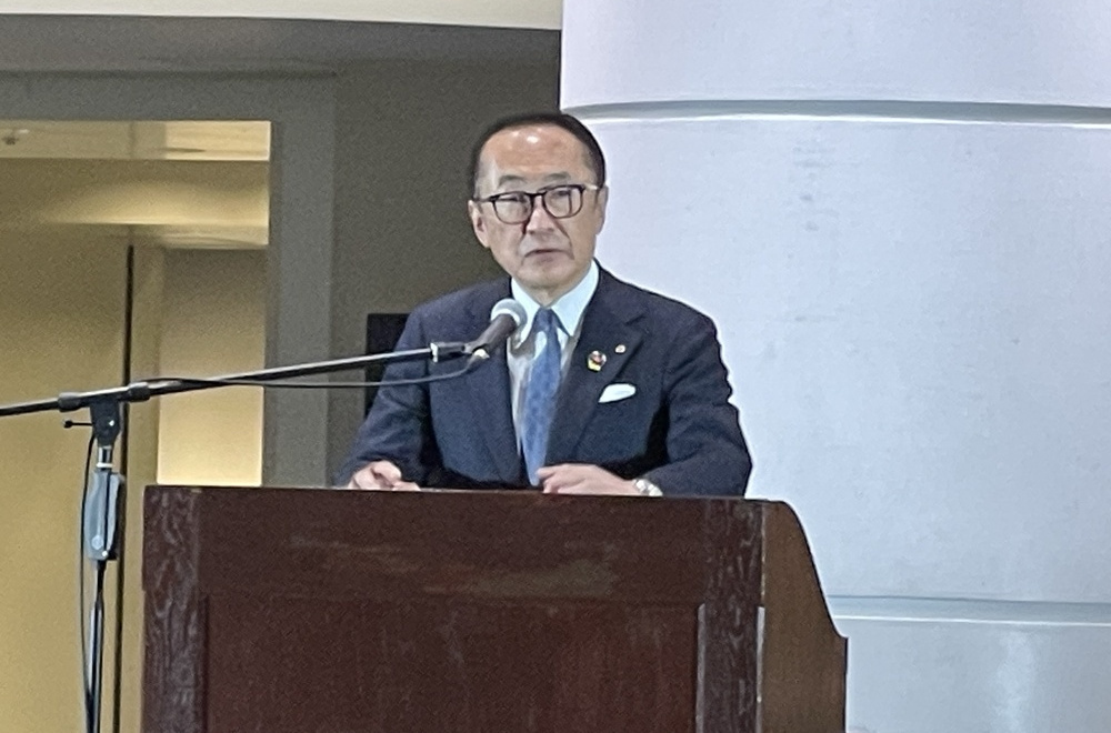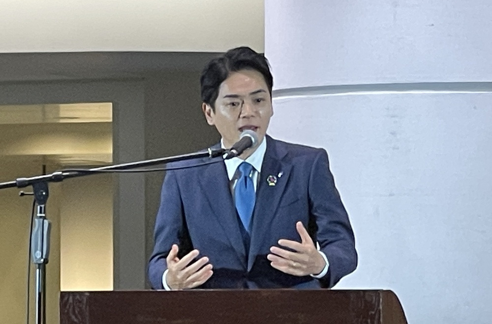オープニングセレモニーで挨拶する山中竹春・横浜市長