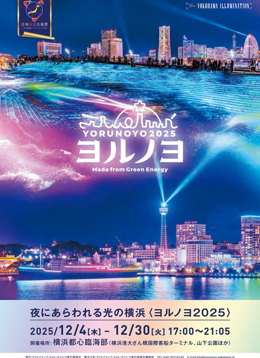 日本新三大夜景都市 “横浜”で、国内最大級のイルミネーションイベント「夜にあらわれる光の横浜〈ヨルノヨ2025〉」が開催中。街全体が色とりどりの光で華やかに彩られた冬の横浜へLet's Go!