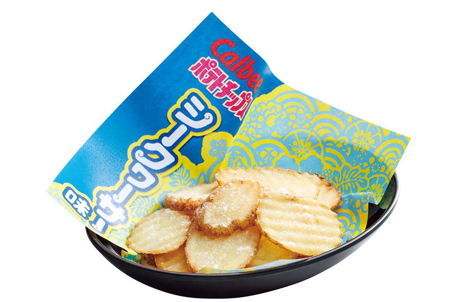 「Calbee厚切りポテト~シークヮーサー味~」。沖縄の塩とシークヮーサー風味がマッチ。
