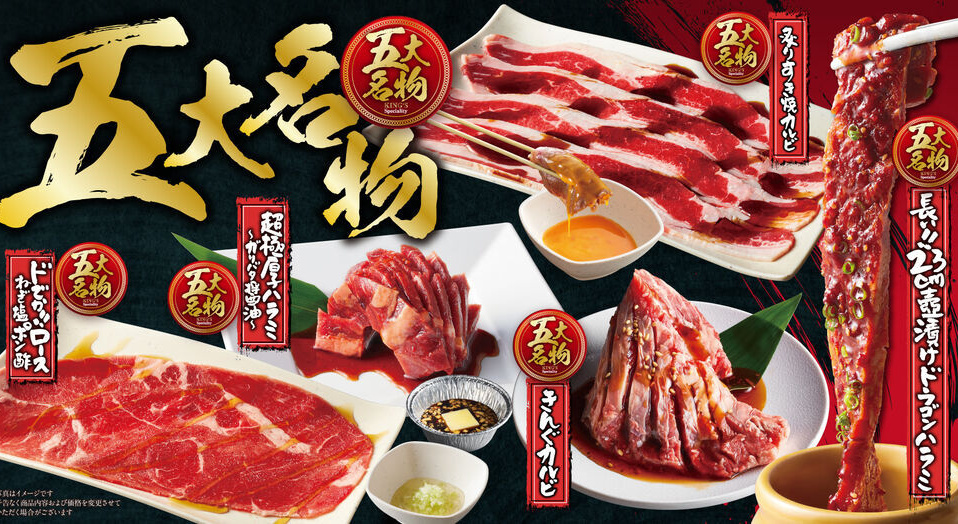 「焼肉きんぐ」が誇る自信作「五大名物」。品質を維持、向上するために、定期的に内容を見直し、ブラッシュアップされている。
