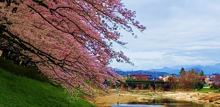 入間川橋梁近辺の見事な桜。名所付近では徐行運転を予定している。