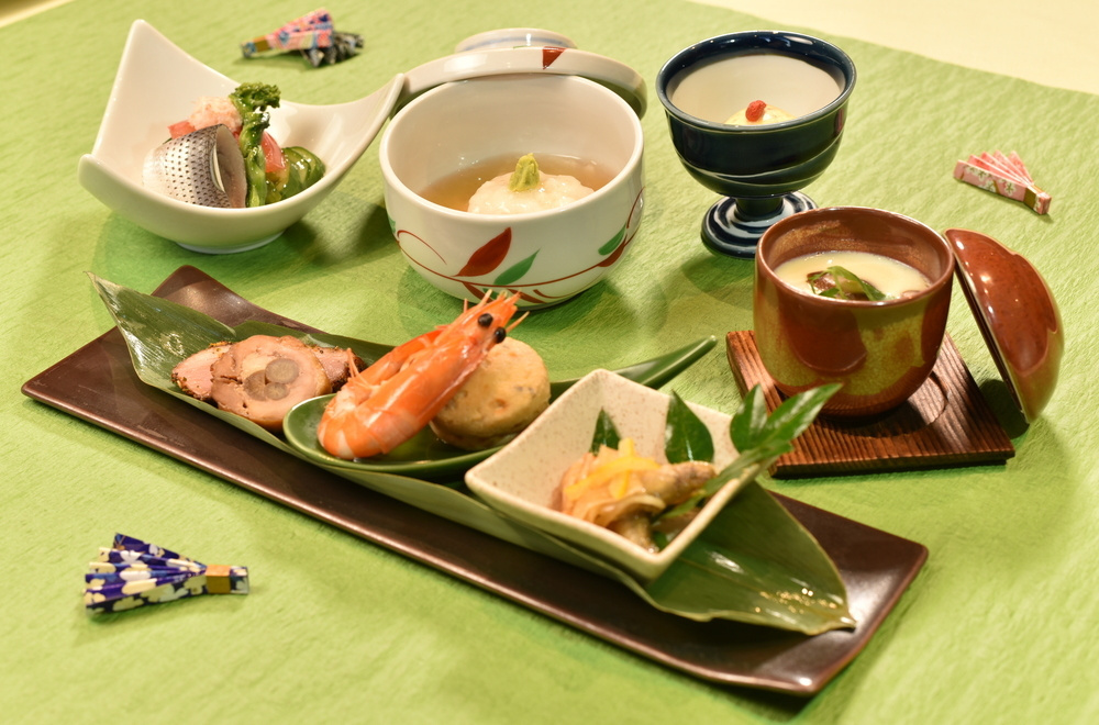 和食コースは穴子とおからのテリーヌや春らしいちらし寿司など。