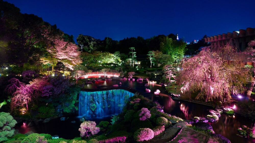 都心で早咲き!? 桜色にライトアップされた庭園でひと足お先に花見気分を味わえる