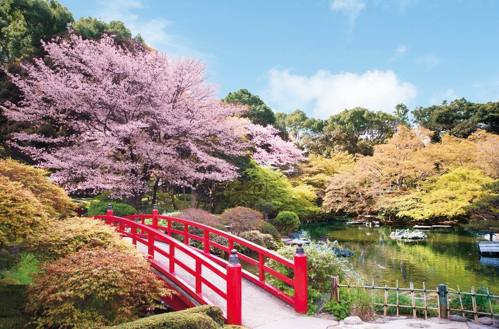 歴史ある日本庭園は1万坪。都心とは思えぬ広さだ。桜に限らず春が息づく風景を楽しもう。