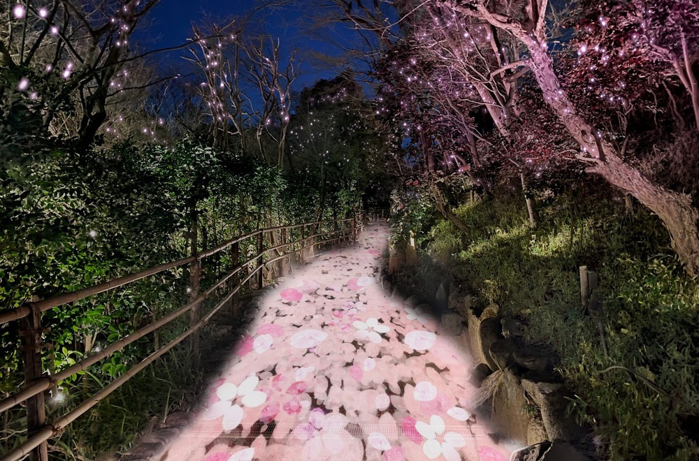 庭園から続く小路に、プロジェクターから桜を投影する「桜の小路」。