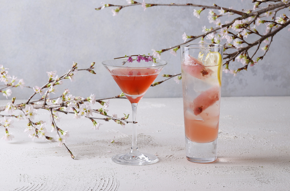 ウォッカベースの桜コスモポリタンとノンアルコールの桜レモネード。