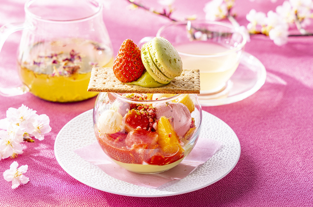 苺と桜をテーマにした華やかなアフタヌーンティーで優雅な時間を。