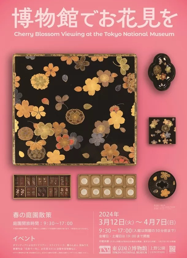東京国立博物館、春の恒例企画が今年も開催されます。「博物館でお花見を」と題して、国立博物館ならではの名品を堪能することができます。主に日本美術を展示する本館各展示室では「犬追物図屏風」など春の風景を描いた絵画や、「金龍山桜花見」など花見を楽しむ人々を描く浮世絵、また桜をモチーフにした陶磁器や染織など、さまざまな工芸作品を堪能できます。本館北側には庭園が広がっていて、開花時期の異なる10種の桜を楽しむこともできます。展示室では春に関する美術品を、庭では本物の桜を、両方楽しめる企画展でぜひお花見しましょう。