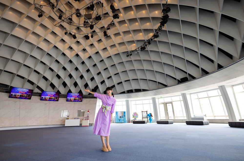 ビルの25階、地上約100mにある球体展望台からは、臨海副都心の景色を270度見渡せます。晴れた日には富士山や丹沢山系まで見ることができるという、迫力ある大パノラマは感動的な美しさ。また、この展望室は撮影スタジオとしても使われており、大きなモニターや照明器具などが設置されています。