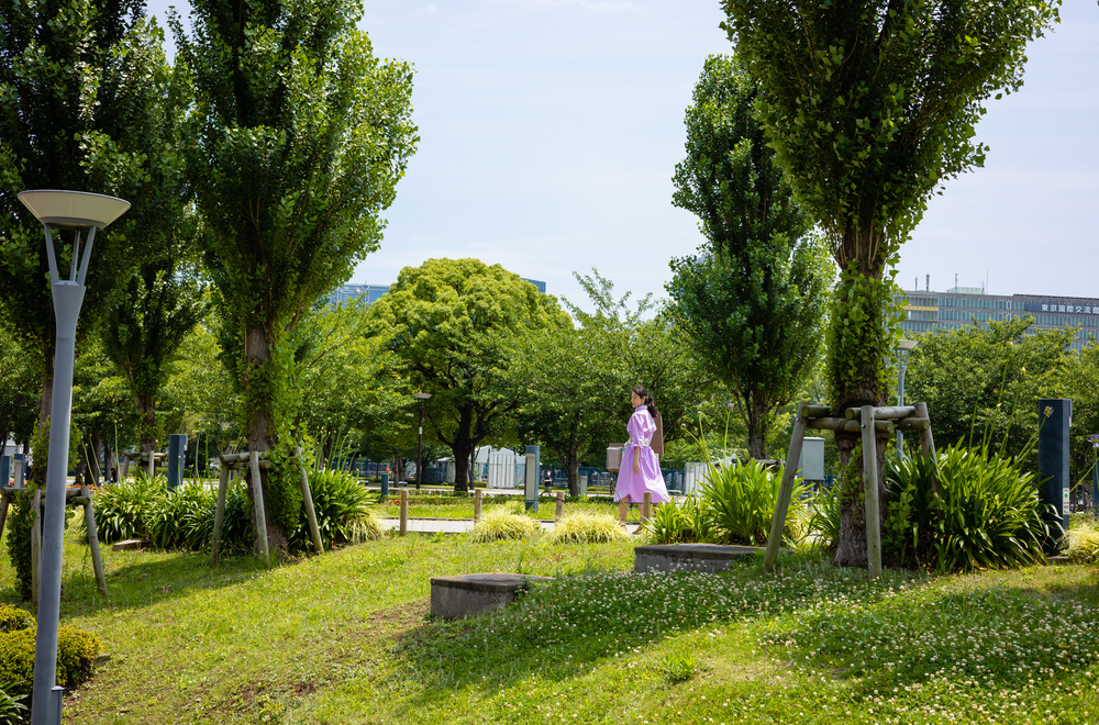 新交通ゆりかもめ「東京ビッグサイト駅」から「青海駅」まで広がる水辺の公園。園内は、行き交う水上バスの景色を眺められる“あけみ橋から有明客船ターミナルエリア”、シンボルプロムナード公園の夢の大橋などを眺められる“あけみ橋東側エリア”、TFTビルなどを眺められる“あけみ橋西側エリア”、パレットタウンの大観覧車を間近に眺められる“青海駅からあけみ橋エリア”の4つのエリアに分けられます。釣り場としても人気で季節によりハゼ、フッコ、カレイ、カサゴなどが釣れるほか、6月には園内中にアジサイが美しく咲き誇ります。