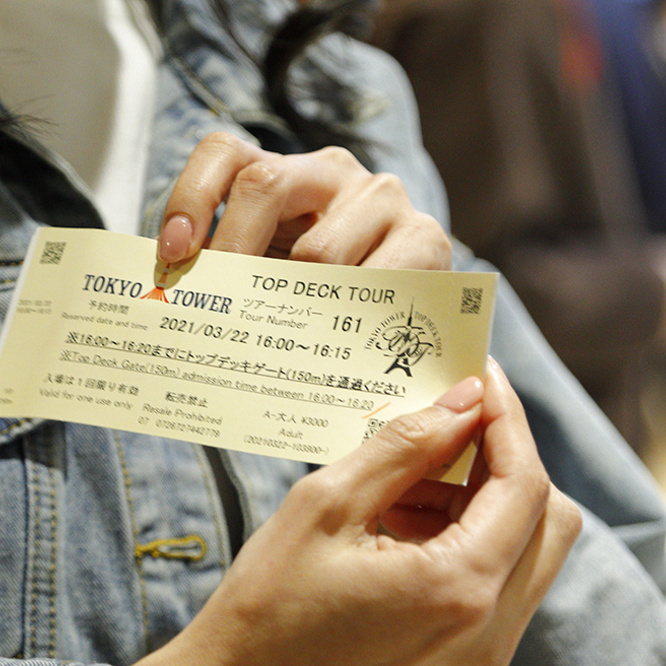 トップデッキエレベーターを待つ間、ドリンクや撮影サービスも。©TOKYO TOWER