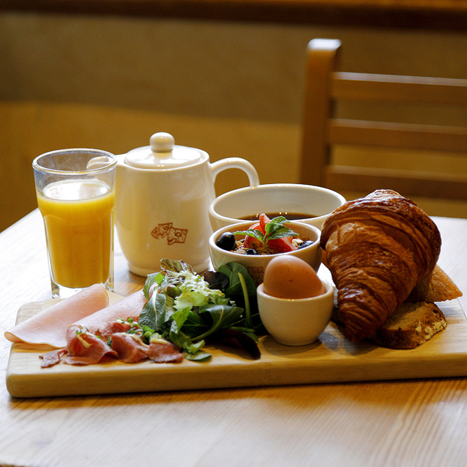 東京プリンスホテルの敷地内にある、ベルギー発祥のベーカリーレストラン。難しい店名はフランス語で「日々の糧」という意味です。毎日店内で伝統的な製法で焼き上げるパンは種類豊富で小麦本来の味が生きています。オーガニック小麦を使ったウイートパンやクロワッサンなどが人気で、これらのタルティーヌ(オープンサンド)などのメニューが味わえます。どれも良質な旬の素材を生かしたシンプルな調理法で健康的なものばかり。朝早くから開いているので朝食に立ち寄る人も多くいます。