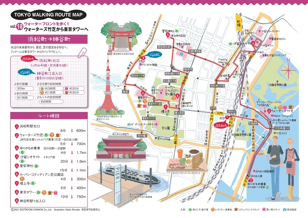 水辺の未来都市から、愛宕、芝の歴史ある寺社へ。フィナーレは東京タワーからのパノラマビュー。