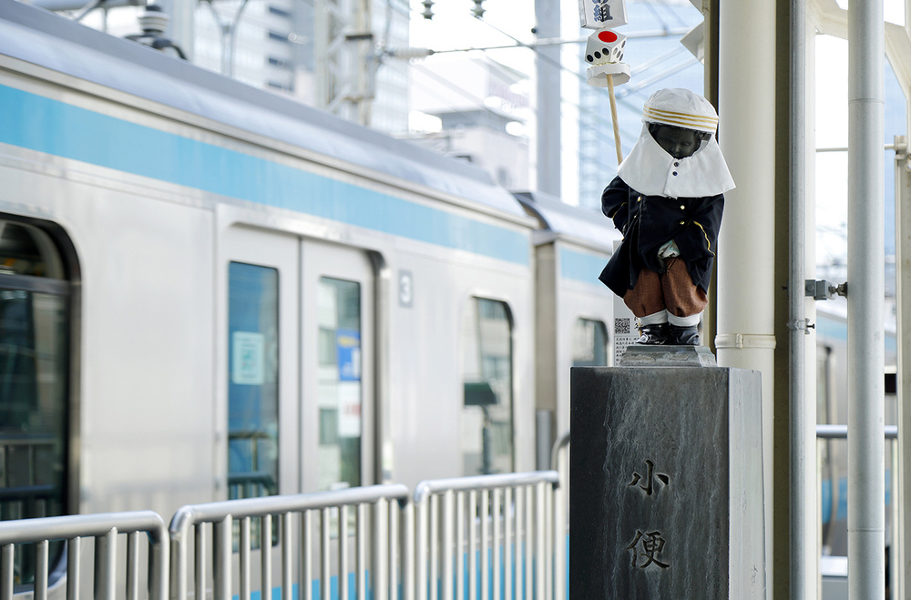 浜松町駅3・4番線ホームの品川寄りには小便小僧の像があり、利用者に愛されている。季節により装いを変えるのが面白い。
