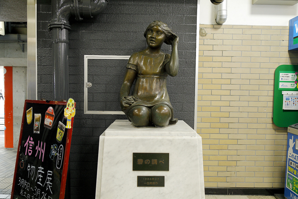 北口の少女像「碧の調べ」の前は待ち合わせ場所になっている。
