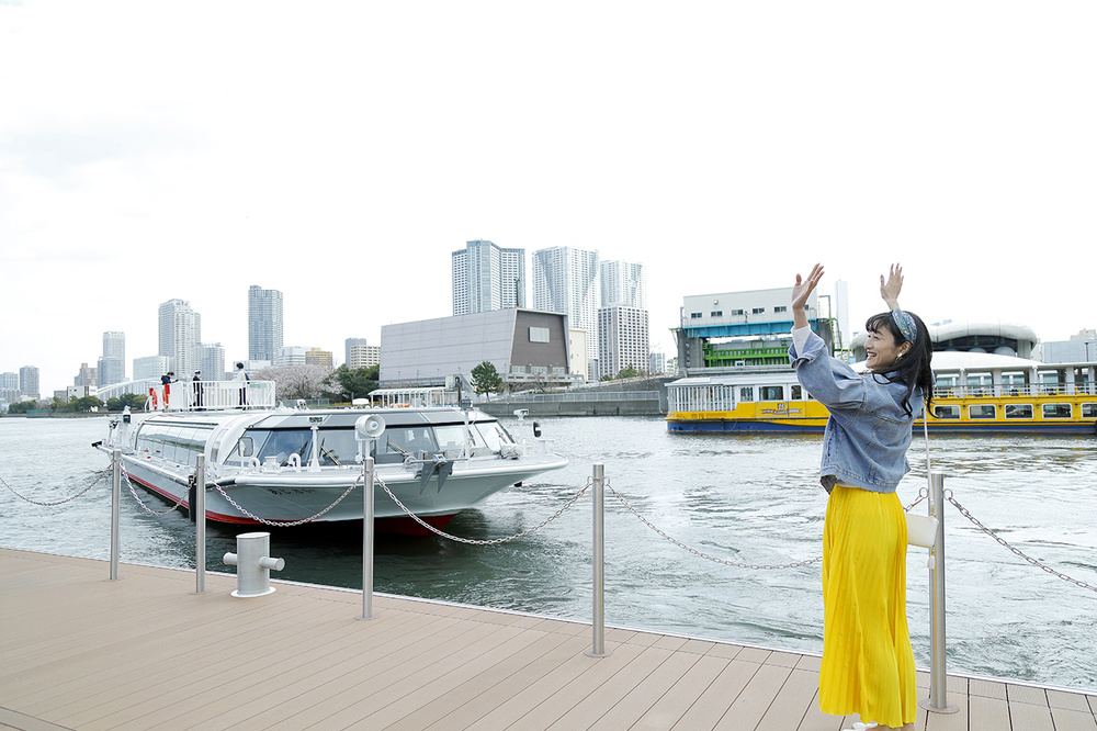 船着場から水上バスを見送る。