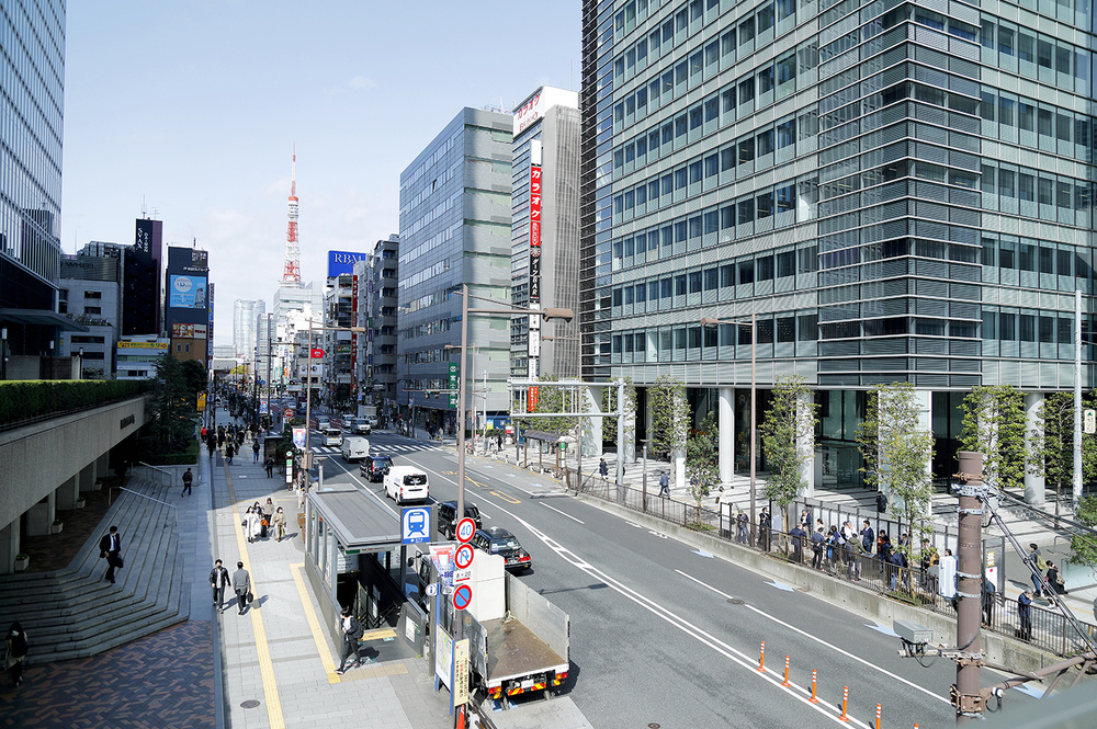 右手には東京タワーが見え隠れする。
