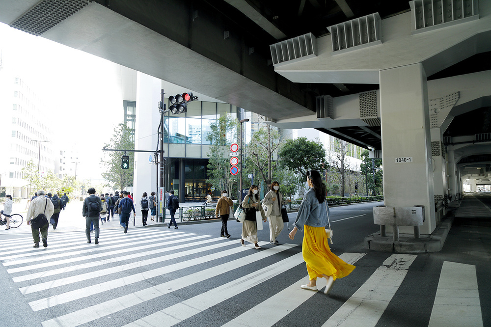 頭上をゆりかもめが行き過ぎる。まさに立体の街。