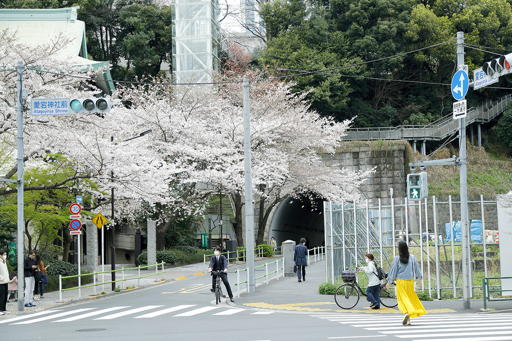 愛宕神社の鳥居前の愛宕下通りを右に向かう。