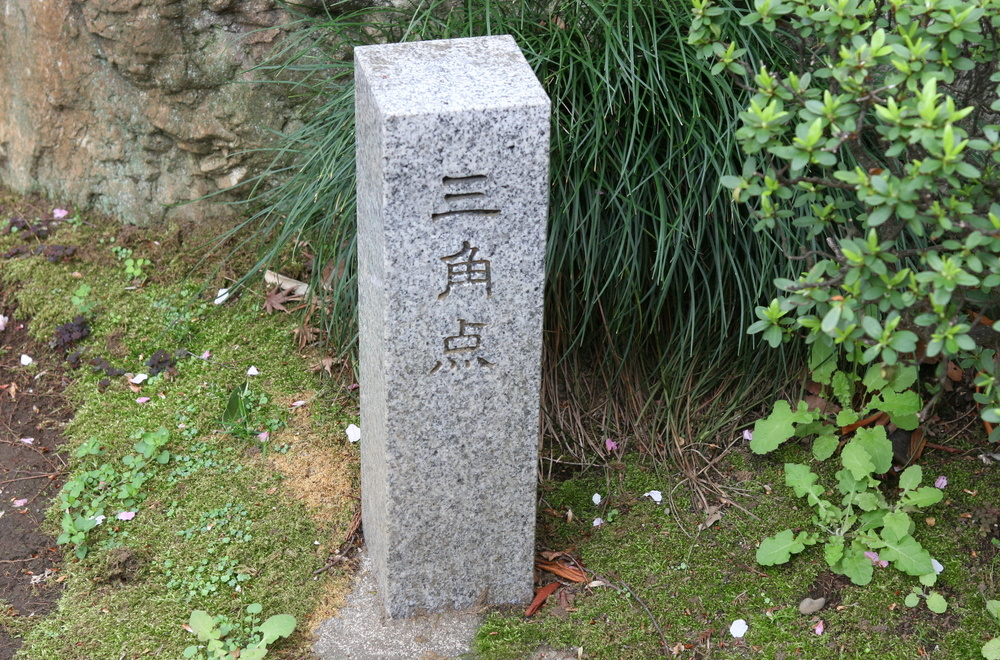 境内のある愛宕山は25.7m。23区内の天然の山の最高点。出世の石段を登った右手に、その証の三角点がある。