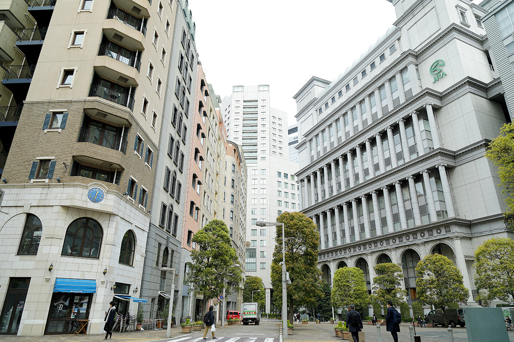 JRAのウインズ汐留など大きな建物も重厚なデザインでそろう。