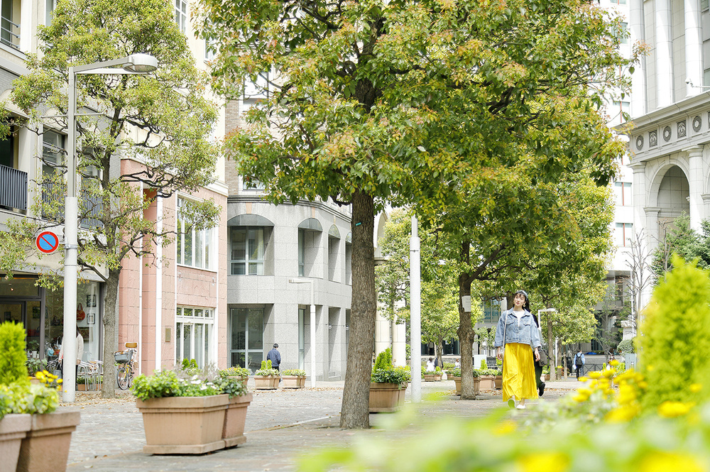 かつて鉄道の転車場があった三角形の広場を中心に、汐留西街区の地権者たちが、商業ビルや住宅をイタリア風にデザイン。イタリア料理のレストランも多く、統一のとれた美しい街並みが続いています。高架と道路を挟んだ3区には、イタリアから寄贈されたトスカーナ風のイタリア公園もあります。