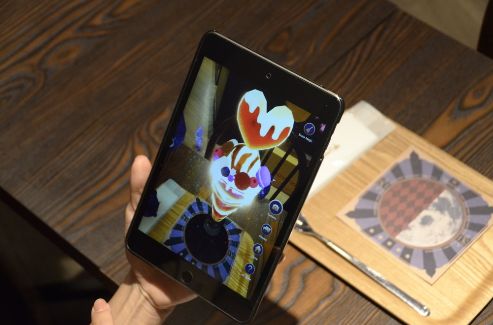 タブレットを通して魔法のようなパフェの映像が見られる。