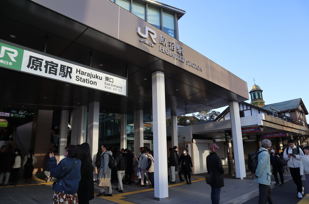 若者の街原宿の玄関駅に到着です。2020年3月21日から広い新駅舎が始動し、さらに利便性がアップ。地下鉄も通っていて、どこに行くにも便利です。