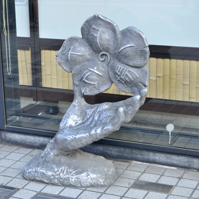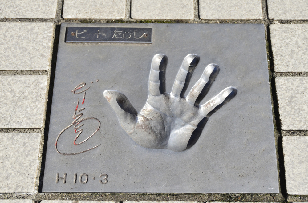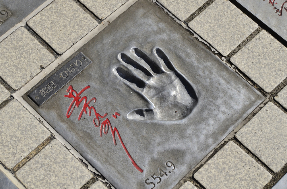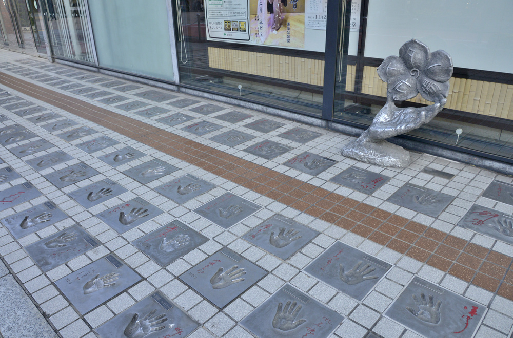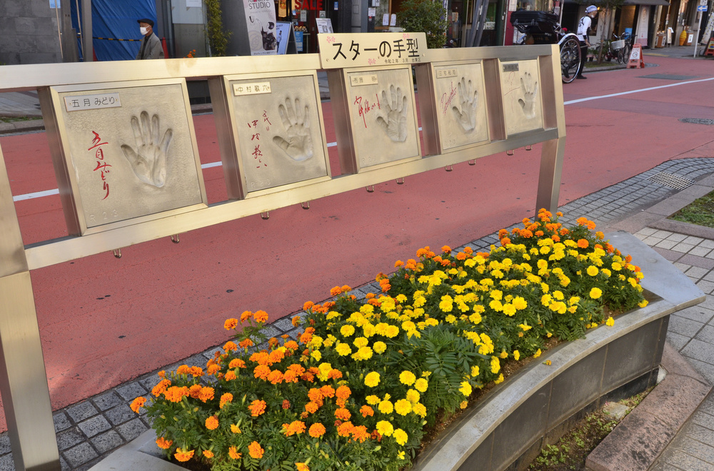 浅草公会堂前、スターの広場には、大衆芸能の振興に貢献した芸能人の手形が飾られている。