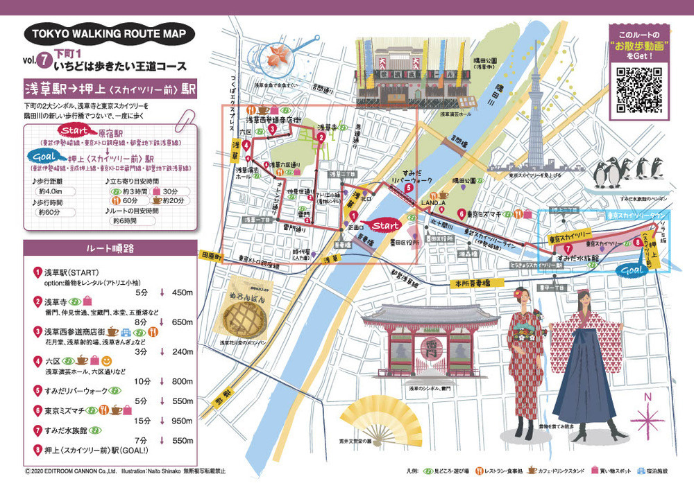東京を訪れる外国人観光客にも一番人気の下町コース。前半の浅草寺エリアでは、下町情緒あふれる商店街を見て歩こう。着物を着たり、人力車に乗ったり、日本文化も満喫できる。後半は、すみだリバーウォークを渡って隅田川の向こう岸へ。東京スカイツリー(R)が、風景の中で次第に大きくなり、最後はその圧倒的な高さで、目の前に迫ってくる。