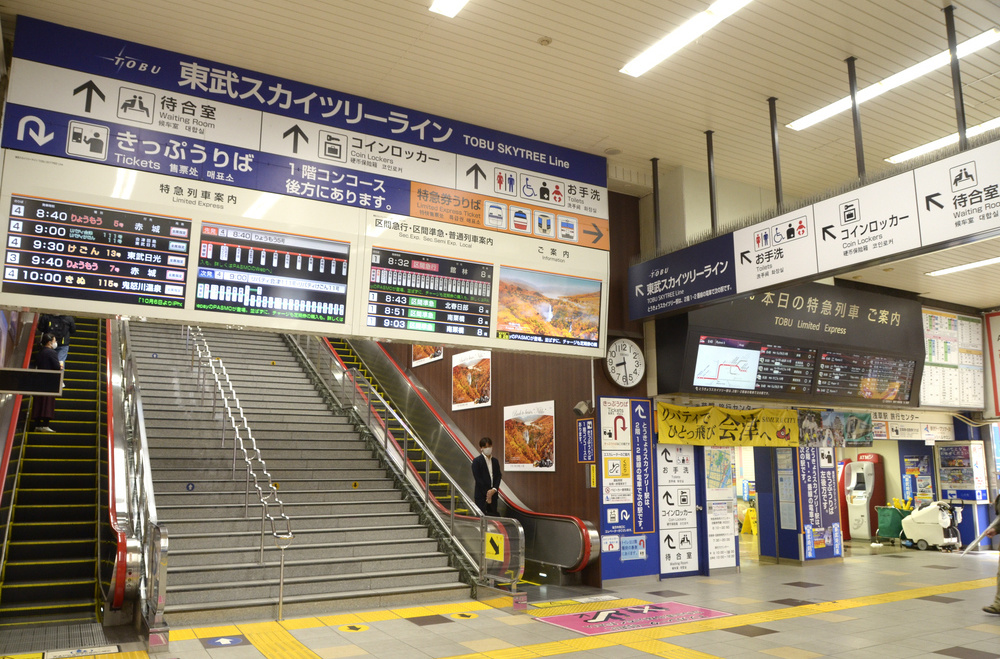 東武浅草駅は大時計のあるアールデコ調の建物が印象的。