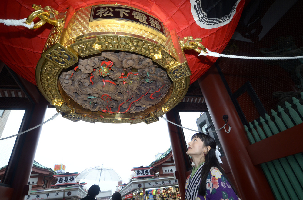雷門の提灯は高さ3.9m重さ700kg。底に龍の彫刻が施されている。