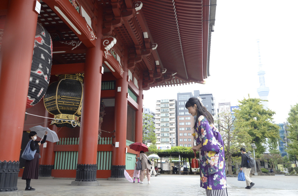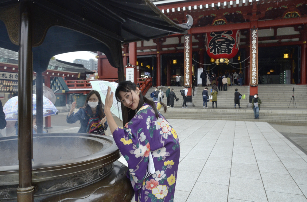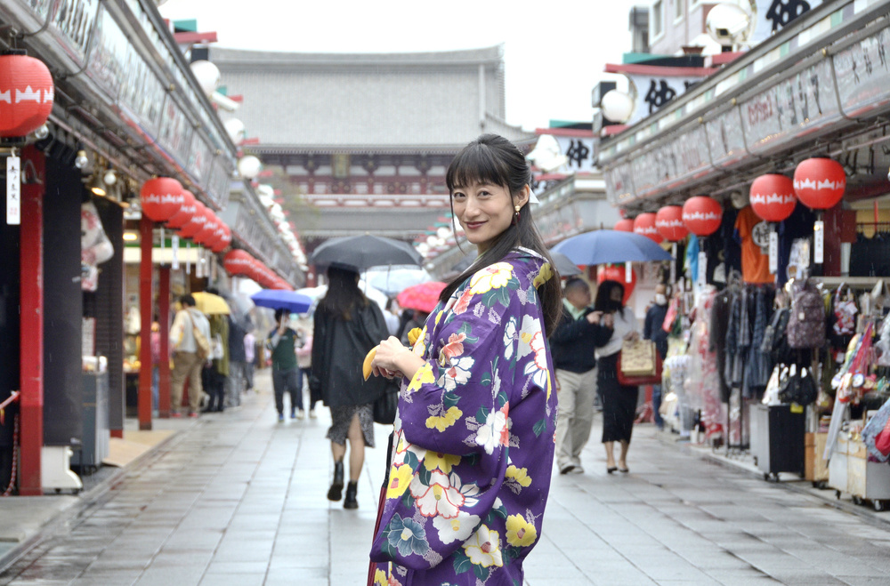 仲見世通りを着物で歩けば、いっそうお参り気分が盛り上がる。