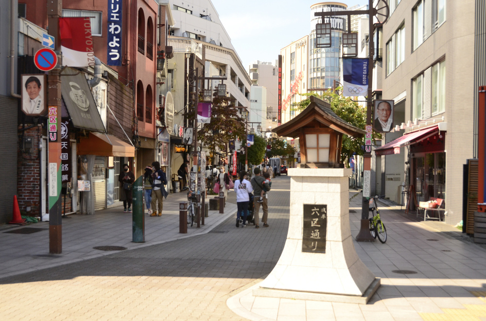 伝法院通りから六区興行街を結ぶ浅草六区通り。