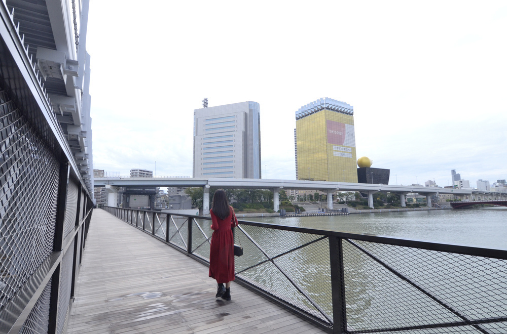 観光客に人気のエリア、浅草と東京スカイツリー(R)は、隅田川を挟んで向かい合っていますが、今まで徒歩で川を渡るのがけっこう不便であり、途中見どころもあまりありませんでした。2020年6月、東武線の鉄道橋の横に、歩行者用の橋が完成しました。ひっきりなしに通る電車を横から眺め、音や振動を感じながら歩くのはなかなかできない体験。隅田川の眺めも楽しめます。木の風合いがやさしく、多くの人が利用しています。橋には東京スカイツリー(R)のキャラクター「ソラカラちゃん」が2カ所に隠れています。