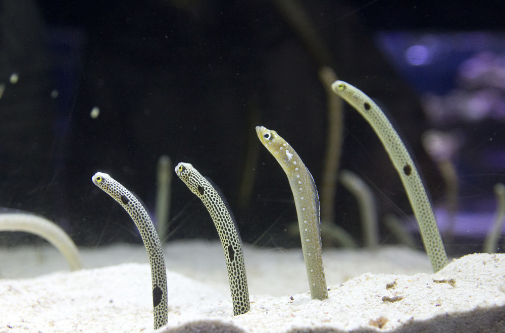 砂から競って顔を出すユニークなチンアナゴは、ここの人気者。
