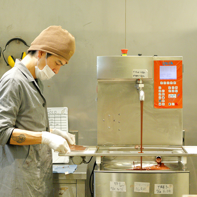 世界10か国以上のカカオプロデューサーから豆を直接買い付け、選別、焙煎、メランジング、テンパリング、そして包装まで全てを自社で行う”Bean to Bar”を実践しているファクトリー&カフェです。2010年にサンフランシスコで創業され、2016年に蔵前で初の海外出店を果たしました。店内にはストックされたカカオや出来上がったチョコレートの甘い香りに満ちています。使っているのはシングルオリジンカカオとオーガニックきび砂糖だけ。苦味や酸味、フルーティーさといった個性豊かなカカオのフレーバーを楽しめ、ワークショップ等も積極的に開催されています。