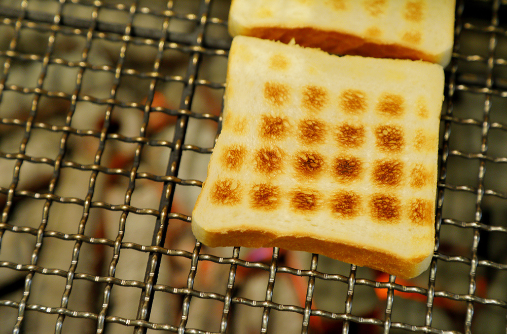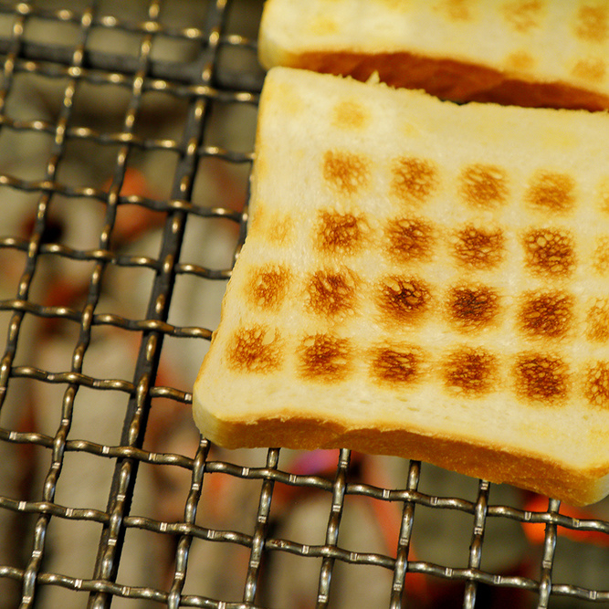老舗パン店の自慢のパンをこんがり炭火でトースト