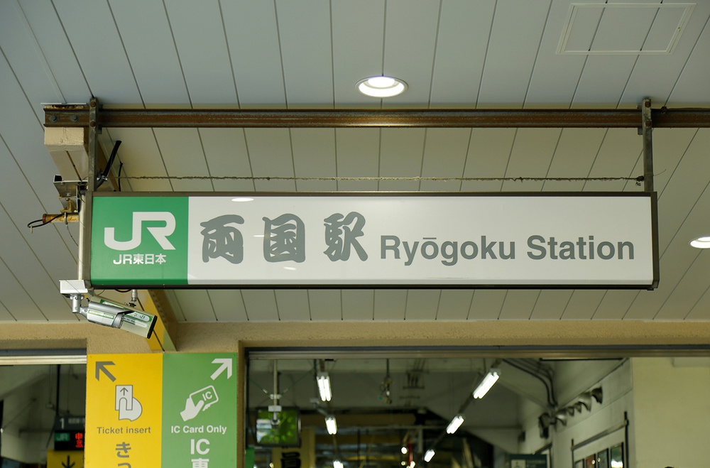 相撲の拠点らしく、駅の看板も相撲文字になっている。