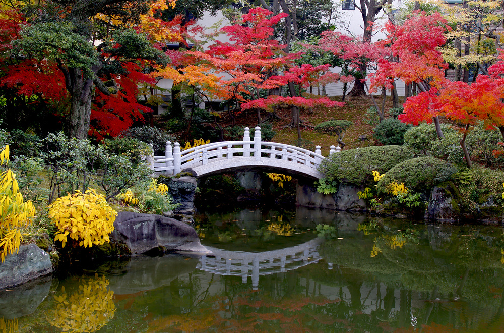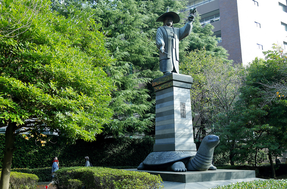 元禄年間(1688~1703)に大名庭園として築造されたと言われ、のちに隅田川の水を引き、その干満を利用して景色の変化を楽しむ潮入回遊式庭園として整備されました。明治に入り、旧岡山藩主池田家の邸宅になったのち、安田財閥の祖、安田善次郎が購入しました。1922(大正11)年に東京市に寄贈され、現在は墨田区が管理しています。中島がある心字池には亀や野鳥が遊び、それを中心に、よく手入れされた日本庭園の向こうに近代的なビルが林立するさまが印象的です。現在は隅田川からの引水はしていませんが、ポンプで潮の干満を再現しています。