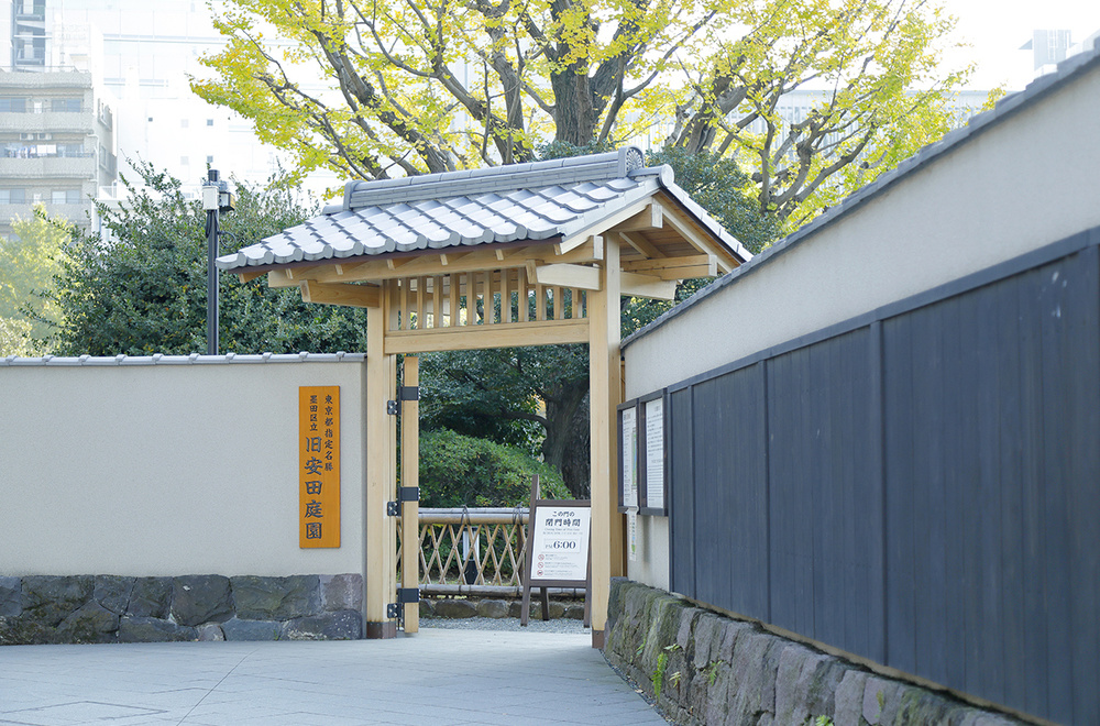 旧安田庭園の出入口は3カ所。入園無料で気軽に散策できる。