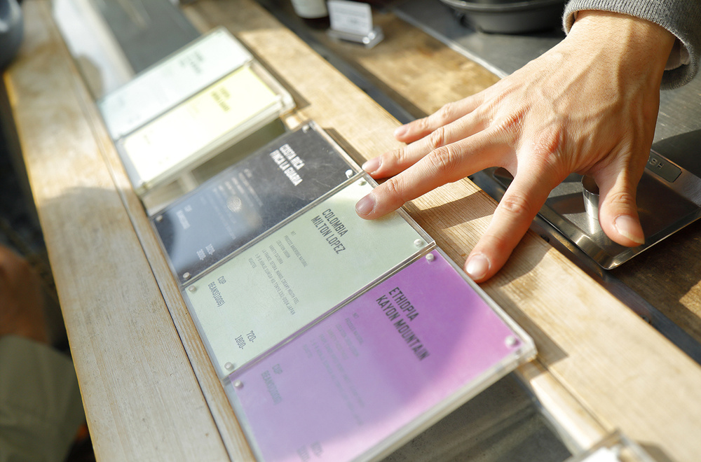 希少なものも含め個性が生きる豆やオリジナルブレンドを毎日6種ほど用意し、その特徴を丁寧に説明してくれる。豆も販売する。